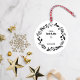 Den här julklappens märkre har en krans med ett par namn.