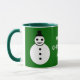 Denna roligt mugg skulle ge en underbar gåva till mamma. Den har en leende vit jul snögubbe med svarta knappar och ett top hat. Han ser ut som en coola och vill hjälpa kärlek att sprida julglädjen i år. Bakgrunden är en fasansfull skugga av grönt. Bilden finns på båda sidor om mugg. Mellan är meddelandet "God jul Mamma, den här texten är anpassade, så att du kan förvandla den till en underbar personlig för mamma eller en annan relation eller vän. Utformningen visas på en grönt och en vit ring stil mugg, men finns också på många fler stilar och färg i mugg, inklusive vackra muggar av frostat glas och bekväma resemuggar för behålla hett som är varm under vintern.