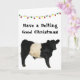 Här är en stilig Belted Galloway-tjurkalv med ett roligt Ha en riktigt God Jul! Den är också redo att få ditt eget gårdsnamn, meddelande eller namn tillagt! Dessa sällsynta skotska beltie kor är lugna och härdiga.
