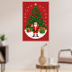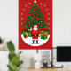 Jultomten står nära Julgran och är försedd med prydnadsföremål, omgivna av helgdag, mot en helig bakgrund. Perfekt för säsong firande och glatta helgdag.