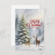 God jul med Stag och Hjort Greeting Card med vinterplats med träd och snö i berget.