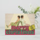 Sprid helgdag cheer i vintage stil med dessa julkort som är redo att anpassa med ditt eget långa vågrät- eller landskapsinriktade foto och ditt eget från-meddelande. Meddelandet "God jul" är skrivet i ett vintage stil-teckensnitt med festive Red och grönt. Den omvända sidan har ett kollage av samordnande semesterhälsningar i en färg-palett på 1970-talet i roligten.