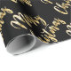god jul i ett modernt skript i eleganten i ett metalliskt guld tittar på snyggtens svarta bakgrund.