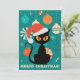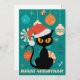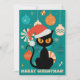 God Jul MidCentury Modern Katt i Tomtehatt Julkort