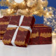 Mycket minimalistisk kort med gyllene ädelgranar på en röd bakgrund för att önska en vacker jul!