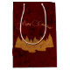 Mycket minimalistisk kort med gyllene granar på en röd bakgrund för att önska en vacker jul!