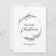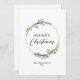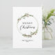 Julhälsningskort med minimalistisk vattenfärgandeutandning med röd blommigt och grönt bladaccenter. Den här eleganten utbröt ramar hälsning "God jul". Enkel att anpassa sig till din familj namn, år och hälsning på baksidan av kortet.