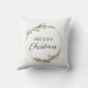 Dekorativ kudde med en minimalistisk vattenfärgandeutandning med röd blommigt och grönt bladaccenter. Den här eleganten utbröt ramar hälsning "God jul".