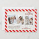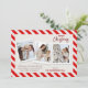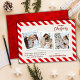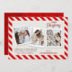"Skicka varmt helgdag med det här charmerande "God jul kort" som har en candy cane-inspirerad design. På kortets framsida visas tre fotoplatser i en lekfull, lagrad stil, vilket gör att du kan omhuldade familjeögonblick. Fet rött och vitt diagonalt rand utgör ett klassiskt candy cane gräns, vilket gör att det finns en glatt helgdag i layouten. Det finns ett skarpt meddelandeutrymme under fotona, med familjens anpassade namn och år för personlig beröring. Kortets baksida är försedd med rikens röda bakgrund och delikat snöflummiskt mönster, och en subtil, elegant avslutas. Med detta helgdag-kort fångas kärnan av juljublet med ett inslag av modernt stil och tidlöst helgdag." Tack för besöket.