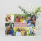 Ett enkelt och modernt julkort i stil har sex (6) foton, en anpassningsbar Julhälsningar och elegant rand på baksidan. Färg: dammiga ro och vita