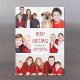 Det här söta, trendig God jul-magnetkortet har en modern layout med fem familjefotografier på en vit bakgrund med röd typografi. Det här vackra fotomagnetiska helgdag har ett eget fotomaket som omger ditt meddelande och familjen namn i grönt.