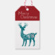 God jul Modern Red Blue Reindeer jul Presentetikett