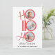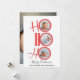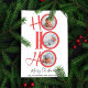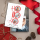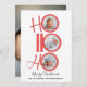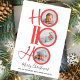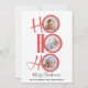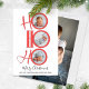 Den här designen har ett snyggt, sött och nyttigt skript, fyra fotokollage i bild, minimalistisk hoho Santa typography, ho ho ho god jul, rent trendig rött och grönt, minimal cirkel, multicollage, modernt trendig i eleganten, modernt kalligrafi-skript typsnitt, enkelt och minimalt vismiskt stil, julskratt citat: