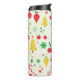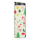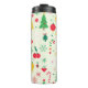 Bilden är en mönster av julteman på en gräddbakgrund. Exempel på detta är Julgranar av olika storlek, dekorationer i rött, gult och grönt, polkagrisar, snöflingor, holly löv och bär, poinsettias och inslaget presenter. Stil är viskartat och barnsligt, med enkla former och ljusa färger.