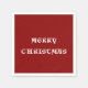 Mörk Red Papper Napkins med "God jul" i ett snövitt teckensnitt.