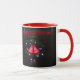En röd julklapp är klar och färglös i Hutchinson Kansas USA-stängslet som ligger på MUGG (kaffe Kopp).