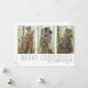 Modern och festlig helgdag för familjer med texten "GOD JUL" med en familj som namnteckning i överlappande skript. Det finns 3 foton på framsidan och 1 på baksidan. Bakgrunden är vit.