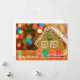 God jul från vårt nya hem. Ett sött gingerbröd är ett fotografiskt meddelande om flytta för en familj som flyttat höger före vintern. En roligt och festlig ändring av adress helgdag kort.