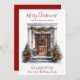 Det nya hemmet för helgdagarnas annonskort med en skuren trädörr med gräs garland, träd, en krans och röda helgdag i God jul skulle vara perfekt att skicka till dina vänner och familj nu när du har flyttat till ett nytt hem. Känslan är anpassade. Få nog så att alla du vet och kärlek har din ny adress. De kommer att bli så entusiastiska över ditt stora drag!