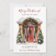 Det nya hemmet för helgdagarnas annonskort i God jul med en festilt dekorerad röd ytterdörr med gräs boughs och träd, en krans och röda helgdag skulle vara perfekt att skicka till dina vänner och familj nu när du har flyttat till ett nytt hem. Känslan är anpassade. Få nog så att alla du vet och kärlek har din ny adress. De kommer att bli så entusiastiska över ditt stora drag!