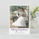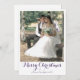 "God jul" på djupt midnatt lila ge. Den här designen är en regal beröring. Visning bröllop-fotot och efternamn på framsidan och lägg till ett kärleksmeddelande och en andra bild på baksidan. Ett rik, kreativ sätt att skicka ditt första helgdag önskemål som gift par.