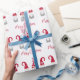 Papper julomslutning med tre söta nordiska gnomer med rött och vitt skandinaviskt stil och lätt grått-manteln. "God jul" är skrivet i ett skript med trendiget red.