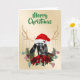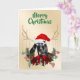 Cute Nubian-killingen med sin julhatt och kantler med strimlade julprydnader omgivna av en helgdag med röda poinsettias, gräs-koner, grön och stor röd båge. - Originalteckning ©goatlady GetYerGoat™ - det här är en målning av Sue Weavers get - Chuck - han är sympatisk