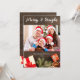 God och Bright Barn Wood-jullkort. På kortets framsida finns en rustik lada-bakgrund, som ge det en varm och mysigt lantgård. Merry & Bright är elegant skrivet i skript överst, där grund har vackert inlindad presenter och christmas gräs grenar. Kortets mittpunkt är ett klassiskt familjefoto som sträcker sig över kortet. Familjefotot fångar ett glatt ögonblick och sprider kärlek och glädje. Kortet fortsätter att ha en mysigt känsla med ett sentimentalt citat och namn.