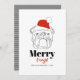 Skicka festiv cheer med det här "Merry & Bright"-julkortet med en fet svart konst som illustrerar en bulldog med en klassisk röd tomtehatt. Den vita bakgrunden och den minsta svarta och röda typografin skapar ett modernt, öga-fångstande utseende. Perfekt för bulldog älskare, ägare av sällskapsdjur och alla som vill en roligt och snyggt Julhälsningar. Anpassa till din familj namn och år för en speciell kontakt med säsong.