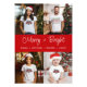 Denna utformning är en modern roligt av familjejulfoto som dubblor som murkonst eller en keepé. Ladda upp dina egna fyra favoritfoton för att anpassa layouten med festliga utfall och en fet röd mittbanderoll med frasen Merry och Bright plus din anpassningsbar-familj namn, perfekt för att visa din snyggt helgdag-besättning.
