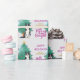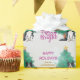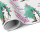 En söt vattenfärgsbild av en svart och vit gräns-kollie sitter framför ett festive Julgran. På sidan står stiliserad text i skarp violett rosa som säger "BE MERRY and BRIGHT". Det är fält som du kan anpassa direkt ovanför. Allt placeras på en blek silver grått-bakgrund med en söt snöflingstjärna som täcker över för att lägga till lite gnistra.