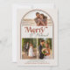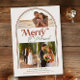 Retro modern Merry och ett nytt ritat fotokort för helgdag med bågformad fotokollage som rymmer 3 av dina julklappar och/eller bröllop-foton. Enkel, snygg palett med neutralt färg med grönt- och musknappaccenter - allt detta kan du anpassa efter ditt val i färg. Sänkt med Merry och präglad med nostalgisk vintage och handskriven manustypografi. Enkel att anpassa sig med namn och hälsning, som till exempel barmhärtigt gift och fullt av glädje ... Bläddra i min första samling av julstämplade fotokort för mer design.
