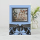 God jul och glad helg, svart båge, svart och blått blommönster anpassningsbar traditionellt fotoskriptkort. Kolla in resten av elegantens helgdag- och hemdekodersamling.
