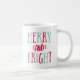 Festive helgdag har citatet "merry and bright" i pulserande, färgstark röd och akvatisk typografi.