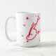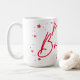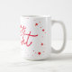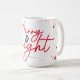 Den här snyggten och det moderna julet Mugg har ett modernt kalligrafiskript i elegant i röda stjärnor och snö. Lägg till den förtryckta texten på insidan eller ta bort exempeltexten till behållan som är tom för din handskrivna anteckning.