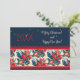 God jul och gott nytt år! 20XX Exotisk blå fågel och vackra julblommor och bärväxt blomsterkrans, marinblå, Noel, XMAS, Helig / Juldekoration, Vinterträdgård, Festlig Noel-fest, Barnkalas, Familj med vänner-fest, gåvor och presenter. Inbjudningar & Brevpapper > Julkort > Högtid & Säsongskort för Vintage-design Handritad illustration, med textmall Anpassa dem genom att lägga till eller ändra namn.