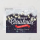 God jul och Gott nytt år Julhälsningar vykortsmallar - jul Gräs Träd Gren, String Ljus och Lila Gnistra Bokeh Ljus.