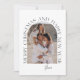 Den här dubbelsidiga platta kortet med God jul och gott nytt år har modern typografi och en 4-foto collage på baksidan. Lägg in dina favoritbilder, lägg till en personlig touch med ditt eget hjärtliga meddelande och anpassa det efter eget tycke. Bilder av prostooleh / Freepik.
