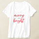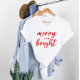 En festlig julgrafisk garanti för kvinnor med modernt skrivmanustypografi med "Merry and Bright"-talesätt. Både röd text och vit tshirt stil kan ändras.