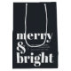 En modern presentsäck i snyggt med fet återtypografi citerar "merry & bright" i vitt på en mörk bakgrund. Hälsning, budskap och namn kan enkelt anpassas till kostym som du behöver. En roligt för trendiget som utmärker den här julhelgen!