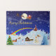 Vackra snowscapes med Julgranar, hus, snögubbe, kyrka och regn med fallande snö och snöflingor. Unik Jultomten som flyger över en fullt måne på julnatten.