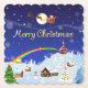 Vackra snowscapes med Julgranar, hus, en man från snö, en kyrka och en regnbåge med fallande snöflingor. Jultomten flyger över en fullt på julafton.