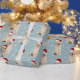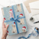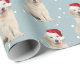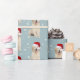 Kute guldkopieringsvalp med julhatt på vit snöflinga mönster och vinterblå bakgrund.