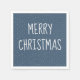 Små vita stjärnor mönster på dammig blå bakgrund med vit God jul text.