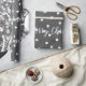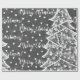 God jul snyggt, vit typografi, med vit Julgran och dekorationer och grått nattlig bakgrund i himlar som upprepar mönster monokrom design för din festila cheer.