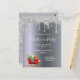 Faux silver foil som bakgrund, med faux silver droppar och vintage röd Jultomten sleigh fylld med gåvor som dekor. Med texten: Jul Party skriven med ett modernt och trendig stort skript i stil. Mallar för information om party. Tips! Om du inte vill att det ska se ut som ett vykort klickar du på anpassa, går till baksidan och tar bort delaren och lägger till frimärke.