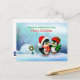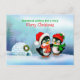 Två söta pingviner lägger sig före sin lilla igloo och festade med en julkrans i ett snöslandskap. Detta munterhetskort är bara högerna för att skicka lite Julhälsningar till de där älskare på jullelistan.