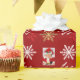 Festiv personlig med papper design med guld och vitt vinter-snöflingor och röd banden på djup röd anpassade, anpassar den här utformningen genom att lägga till din familj namn eller hälsning och lägga till ditt favoritfoto i familjen.