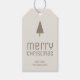 Lägg till en modern beröringsknapp till din helgdag med den här snyggten julklapp-märkrn, med en snygg design av abstrakt Julgranar, delikat snöflingor och elegant stjärnor på baksidan. På framsidan visas ett glatt "God jul" hälsning och utrymme för att anpassa sig till din familjs namn eller anpassningsbar text. Perfekt för att lägga till en tankfull personlig som avslutar till gåvor till vänner, familj eller klienter den här julhelgen.