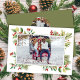 Den här designen har ett fotokort för vågrät i god jul, med en flerfotomall, en botanisk, mistel, vattenfärgad utformning med elegant, mörk grönt bakgrund, grönt löv och trendig i snyggt